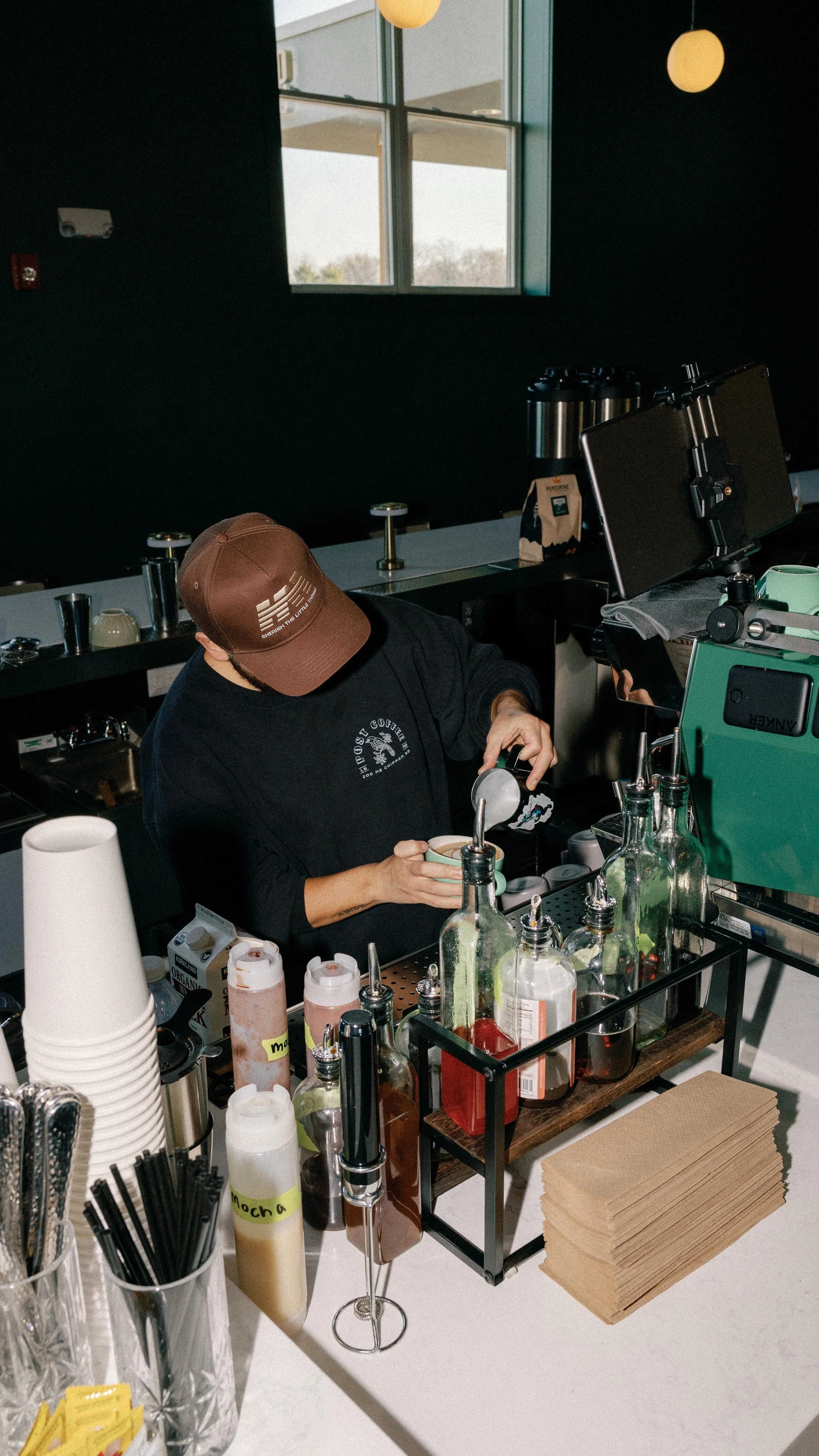 Ase Coffee partners with Fox & Bull Baking Co. to offer a selection of organic, dye-free pastries, breads, and breakfast items, complementing its locally roasted coffee from Peregrine Coffee Roasters. The menu features espresso-based drinks with house-made syrups and organic or macadamia nut milk options. Future plans include a full bar service with cocktails, beers, and wines, enhancing its hybrid cafΓ©-bar appeal.